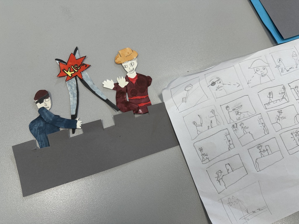 Zurück im Atelier entwickelten sie Storyboards, zeichneten ihre Comic-Panels mit Bleistift und arbeiteten sie mit Finelinern und Buntstiften aus. Parallel lernten sie, ihre Szenen mit Tablets zu fotografieren und nach und nach daraus Stop-Motion-Filme zu erstellen. So wurden die Comics nicht nur gelesen – sie begannen sich zu bewegen.